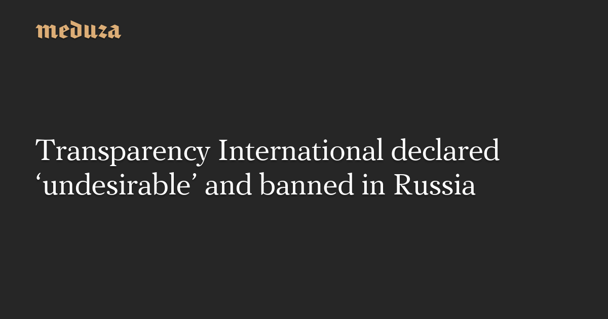 Russia’s Prosecutor General has officially declared the anti-corruption non-profit Transparency International “undesirable” in Russia.