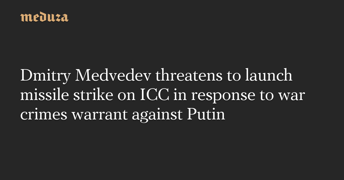 Russian Security Council Deputy Chair Dmitry Medvedev lashed out at the International Criminal Court (ICC) on Monday, warning on Telegram that Russia might respond to the body’s decision to issue an arrest warrant against Vladimir Putin by launching a missile strike on its building in The Hague.
