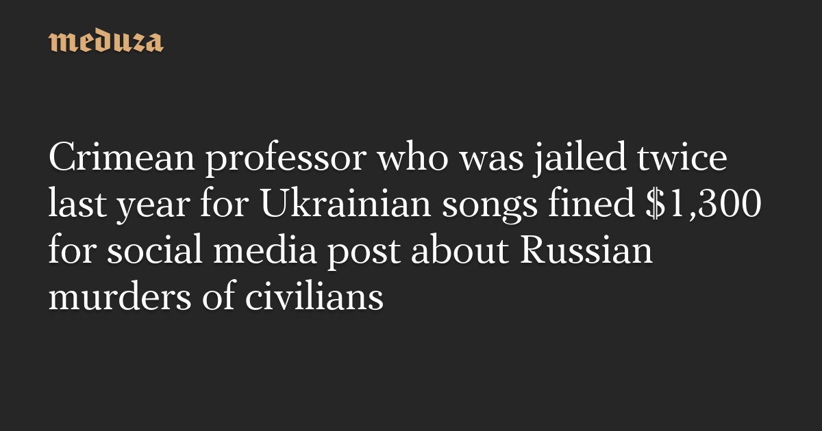 Crimean professor who was jailed twice last year for Ukrainian songs fined $1,300 for social media post about Russian murders of civilians