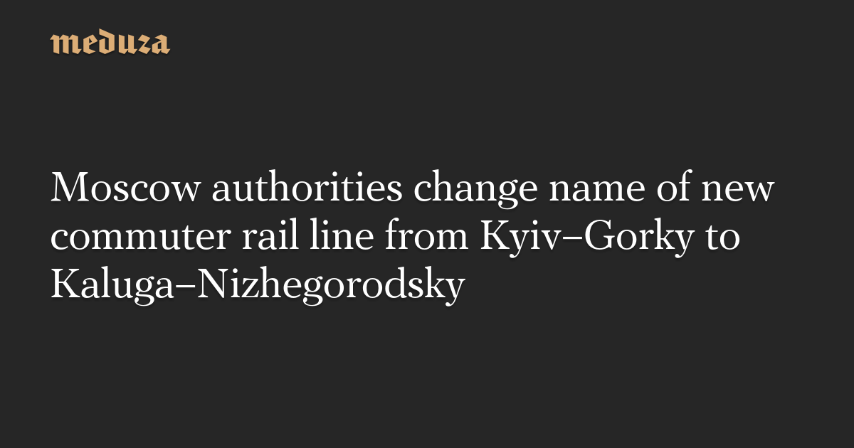 Moscow authorities change name of new commuter rail line from Kyiv–Gorky to Kaluga–Nizhegorodsky