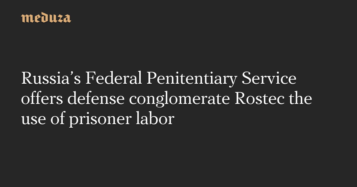 Russia’s Federal Penitentiary Service offers defense conglomerate Rostec the use of prisoner labor