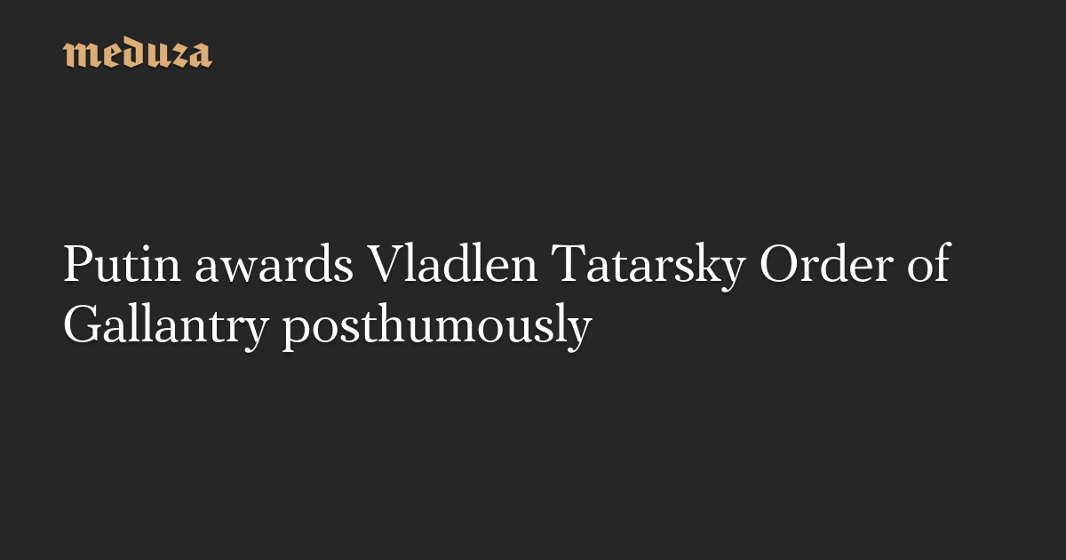 Vladimir Putin has issued a decree awarding the state Order of Gallantry to the military blogger Vladlen Tatarsky posthumously. The self-styled “war correspondent” was killed by a bomb on Sunday, while hosting a reading in St. Petersburg.