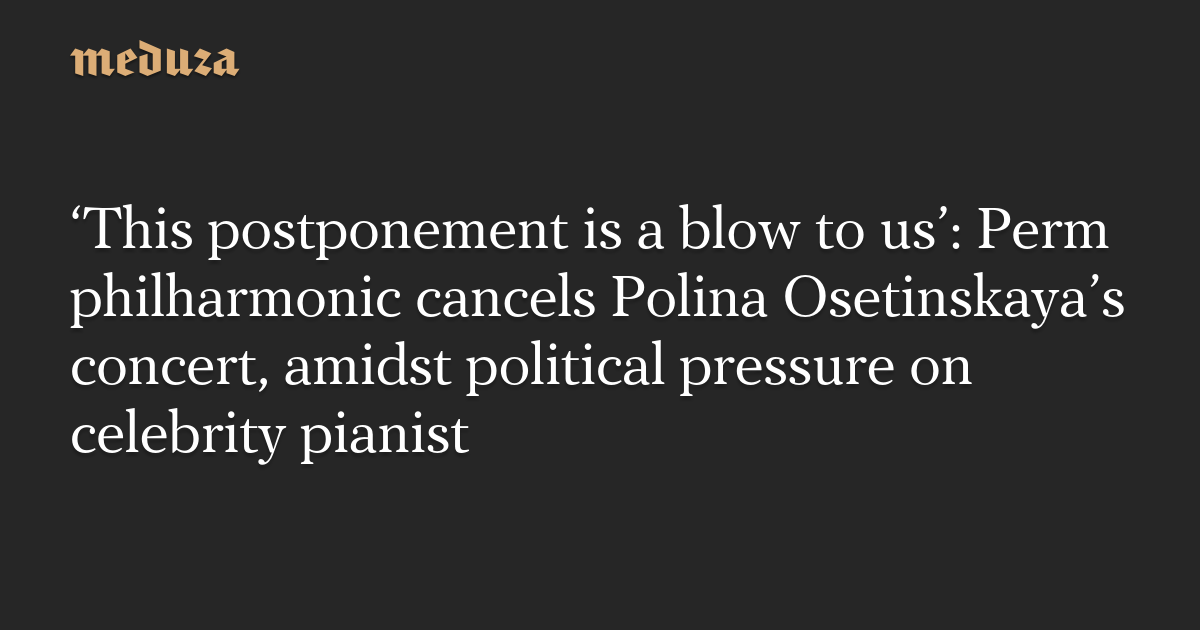 ‘This postponement is a blow to us’: Perm philharmonic cancels Polina Osetinskaya’s concert, amidst political pressure on celebrity pianist