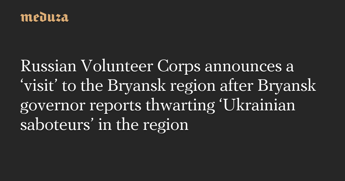 Russian Volunteer Corps announces a ‘visit’ to the Bryansk region after Bryansk governor reports thwarting ‘Ukrainian saboteurs’ in the region