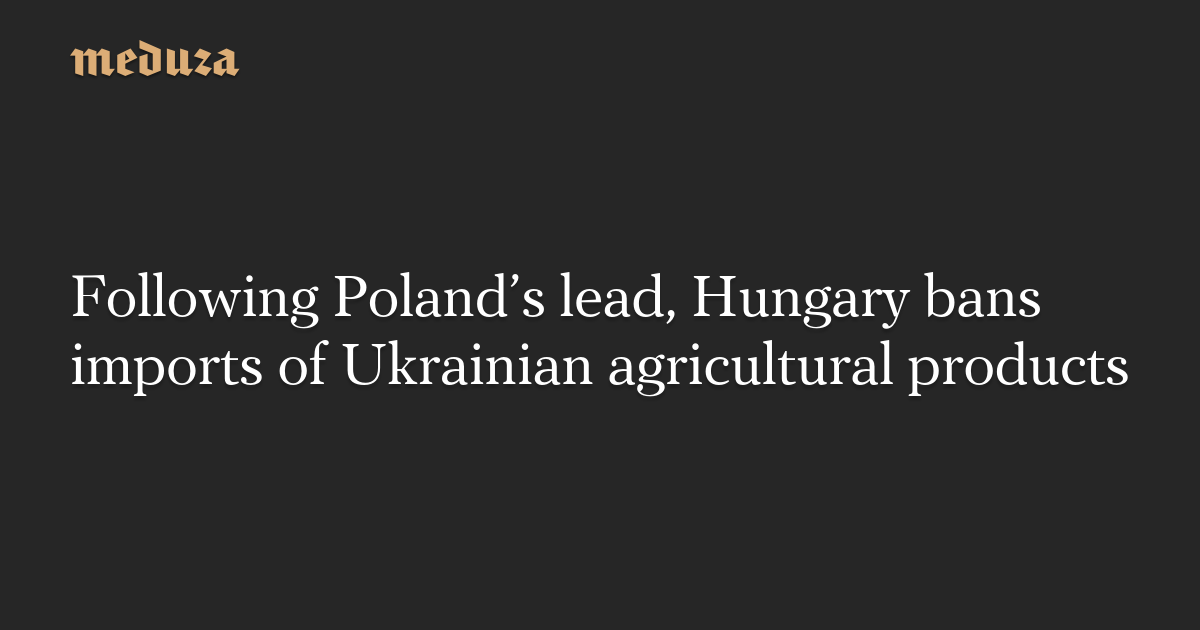 Hungary follows Poland, which temporarily halted imports of grain and a variety of other agricultural products, including milk, eggs, and poultry, from Ukraine on April 15. Ukraine’s Ministry of Agricultural Policy expressed disappointment with Poland’s decision, saying that it contradicts prior agreements between the two countries.
