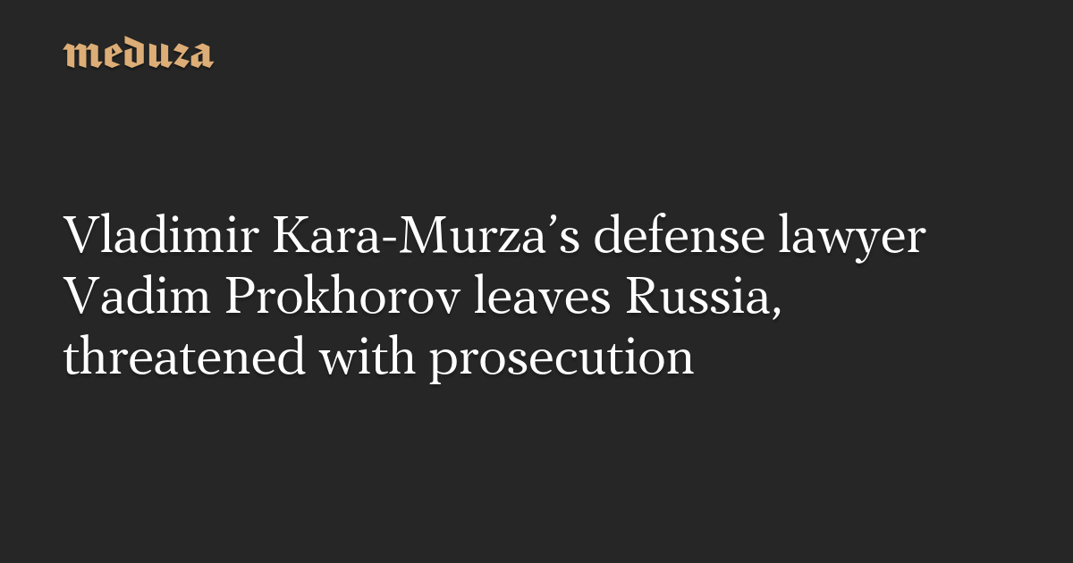 Vadim Prokhorov, the defense attorney who represented the Russian politician Vladimir Kara-Murza during the trial that concluded on April 17, has left Russia, amidst threats of being disbarred and prosecuted.