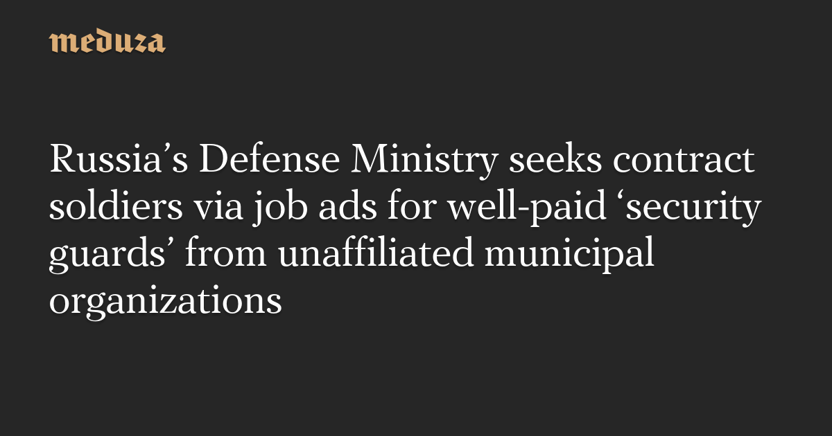 Russia’s Defense Ministry seeks contract soldiers via job ads for well-paid ‘security guards’ from unaffiliated municipal organizations