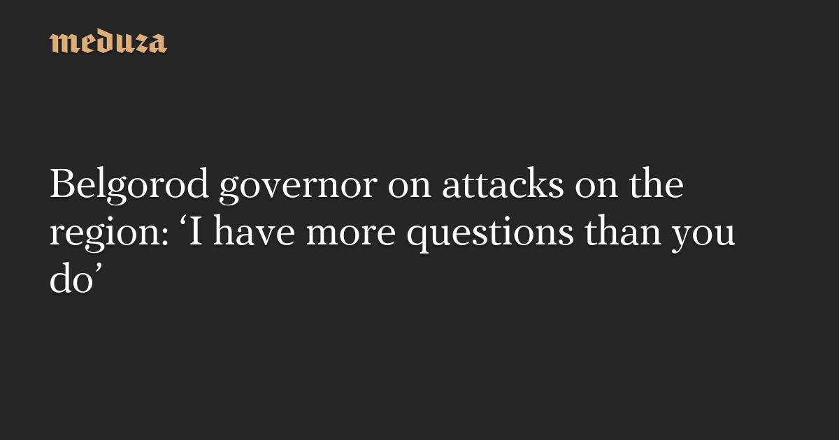 Belgorod governor Vyacheslav Gladkov said during a livestream on Russian social media network VKontakte that he has many questions for Russia’s Defense Ministry regarding yesterday’s armed attack on the border region.