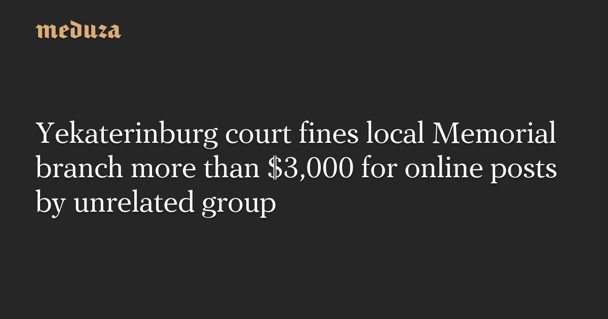 Yekaterinburg court fines local Memorial branch more than $3,000 for online posts by unrelated group