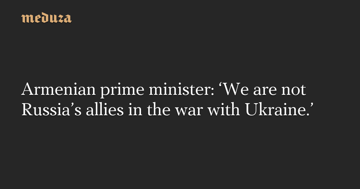 “You said that we’re Russia’s allies. You didn’t say it out loud, of course, but I think it was evident. [But] we are not Russia’s allies in the war with Ukraine. And our feeling about this war, about this conflict, is alarm, because it directly impacts all our relationships,” said Pashinyan (as quoted by News.am).