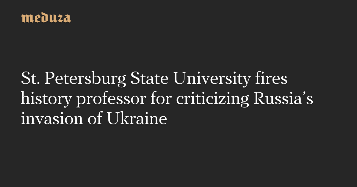 St. Petersburg State University fires history professor for criticizing Russia’s invasion of Ukraine