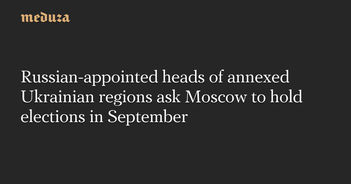 Russian-appointed heads of annexed Ukrainian regions ask Moscow to hold elections in September