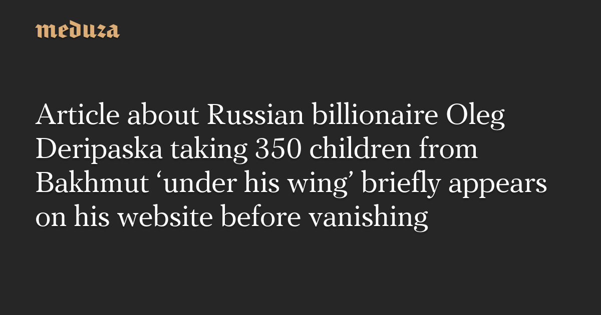 An article appeared on the website of Russian billionaire Oleg Deripaska on Tuesday that said the businessman’s foundation, “Volnoe Delo,” had “taken patronage” over children who had been transported to Russia from Bakhmut. The post has since been removed from the site, but a copy remains on the Internet Archive.