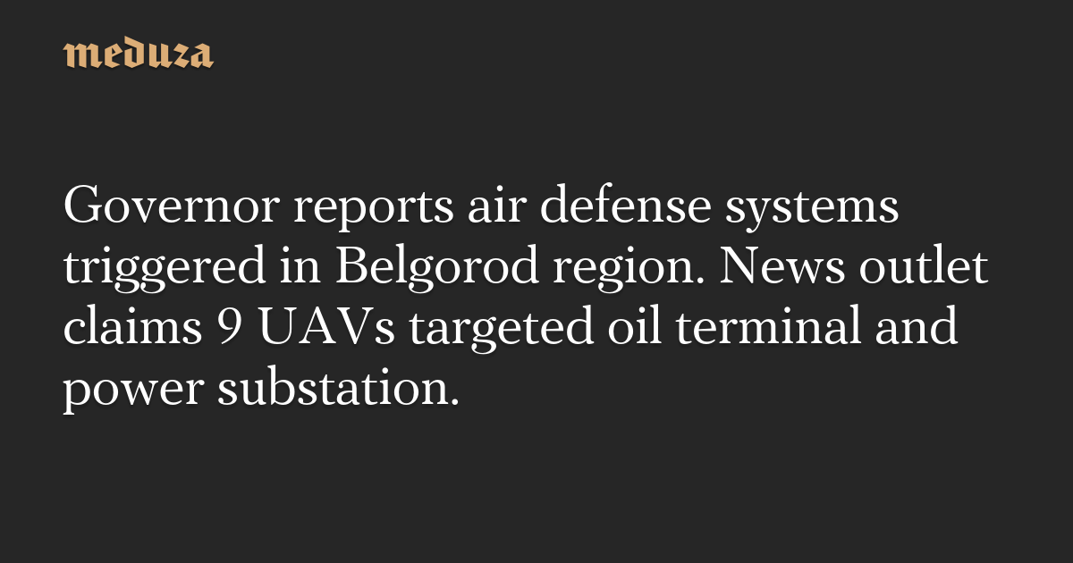 Governor reports air defense systems triggered in Belgorod region. News outlet claims 9 UAVs targeted oil terminal and power substation.