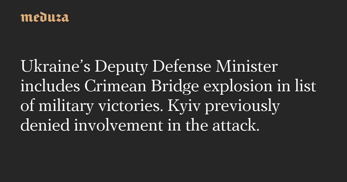 Ukraine’s Deputy Defense Minister includes Crimean Bridge explosion in list of military victories. Kyiv previously denied involvement in the attack.