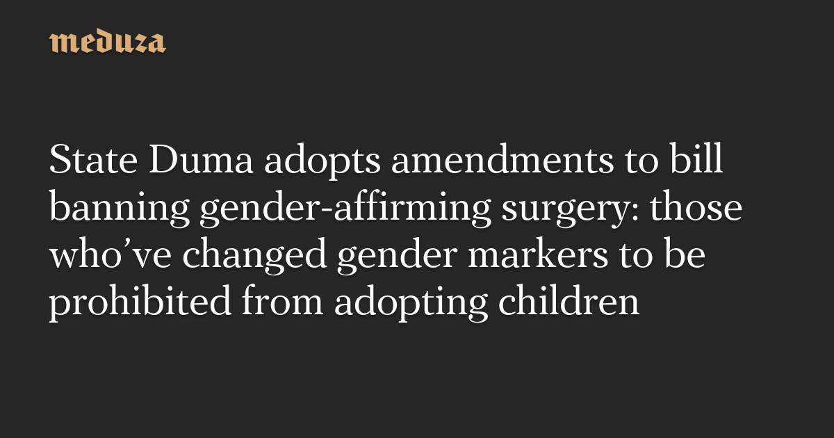 State Duma adopts amendments to bill banning gender-affirming surgery: those who’ve changed gender markers to be prohibited from adopting children