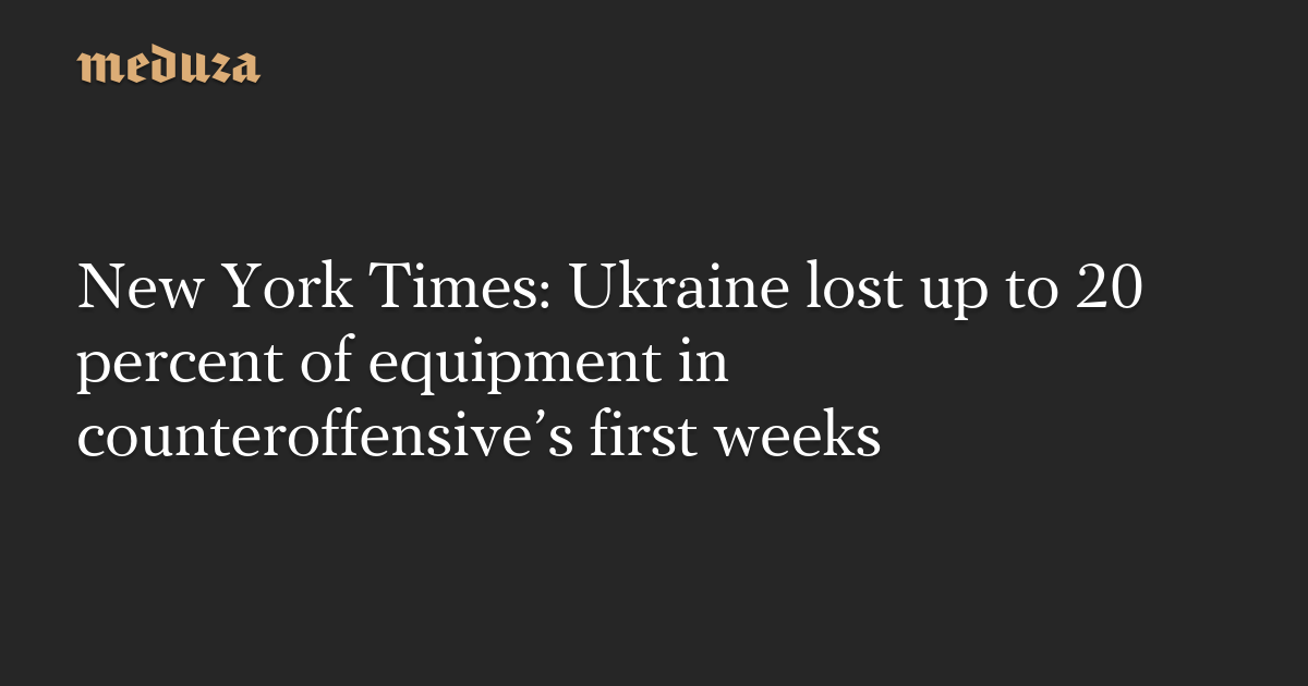 New York Times: Ukraine lost up to 20 percent of equipment in counteroffensive’s first weeks