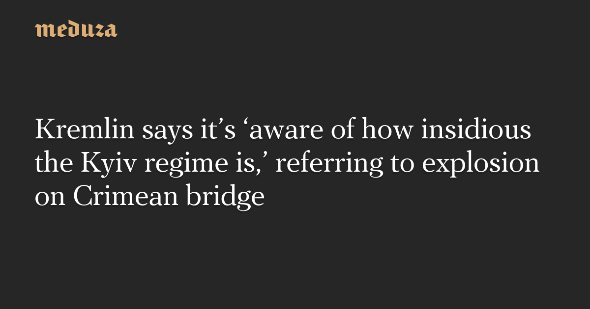 Kremlin says it’s ‘aware of how insidious the Kyiv regime is,’ referring to explosion on Crimean bridge