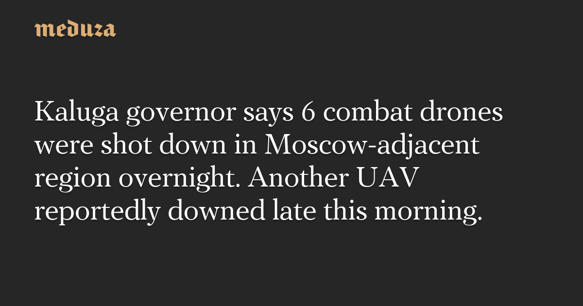 Kaluga governor says 6 combat drones were shot down in Moscow-adjacent region overnight. Another UAV reportedly downed late this morning.