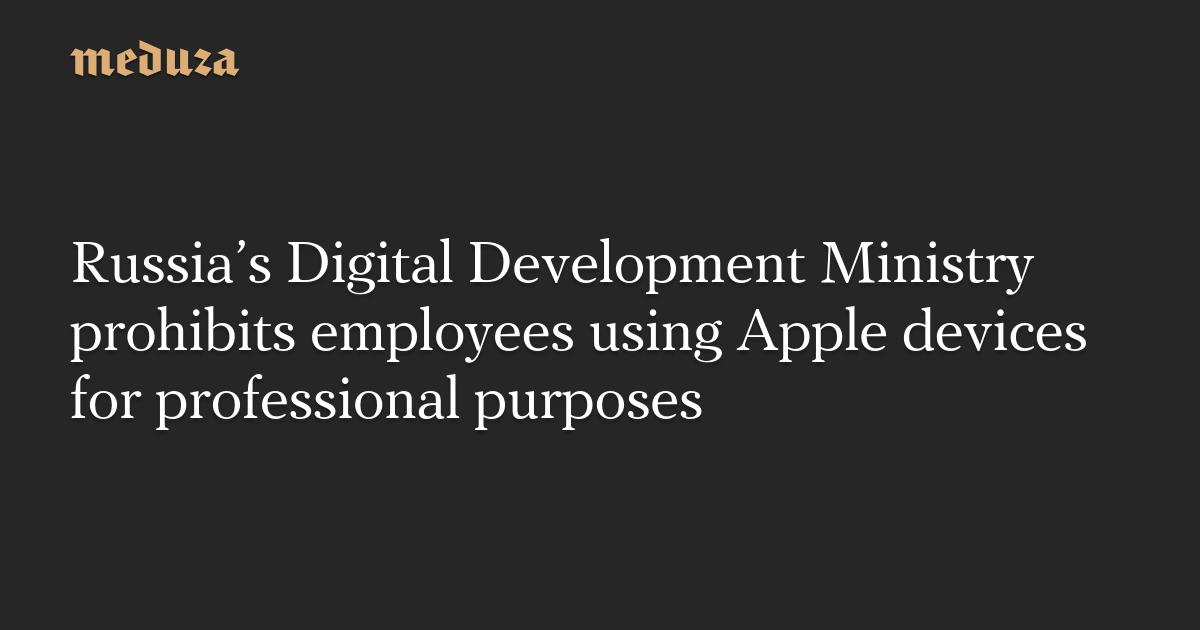 Russia’s Ministry of Digital Development, Communications, and Mass Media has barred its employees from using Apple smartphones and tablets in any professional capacity, reports Interfax, citing ministry head Maxut Shadayev.