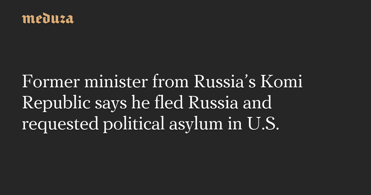 Former minister from Russia’s Komi Republic says he fled Russia and requested political asylum in U.S.