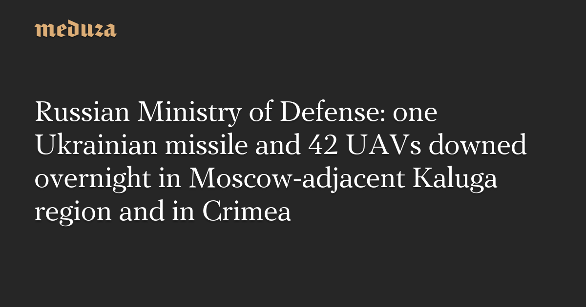 Russian Ministry of Defense: one Ukrainian missile and 42 UAVs downed overnight in Moscow-adjacent Kaluga region and in Crimea