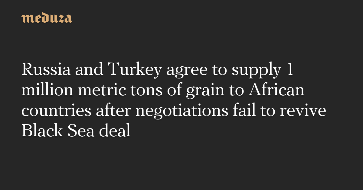 Russia and Turkey agree to supply 1 million metric tons of grain to African countries after negotiations fail to revive Black Sea deal