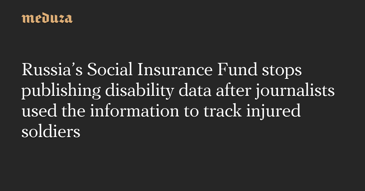 To estimate the number of soldiers disabled by injuries sustained in the war in Ukraine, investigative journalists at Mediazona studied records released by Russia’s Social Insurance Fund on disability payments. On Wednesday, Mediazona noticed that the agency no longer reports these data. In fact, the entire “Analytics” section has disappeared from the Social Insurance Fund’s website.