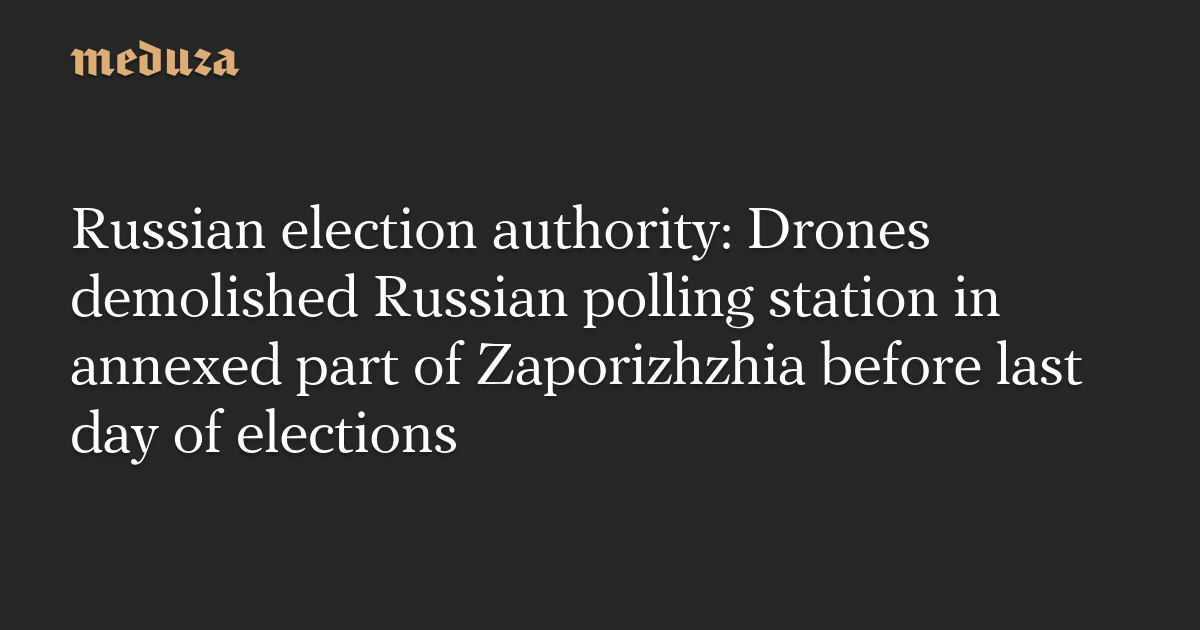Russian election authority: Drones demolished Russian polling station in annexed part of Zaporizhzhia before last day of elections