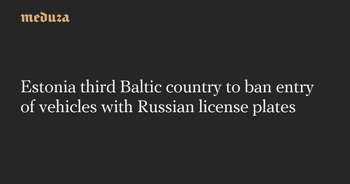 The ban, effective September 13, will not apply to buses, motorcycles, or diplomatic vehicles, the Estonian authorities clarify. The question of what to do about Russian vehicles already in Estonia will be addressed at a September 14 meeting.