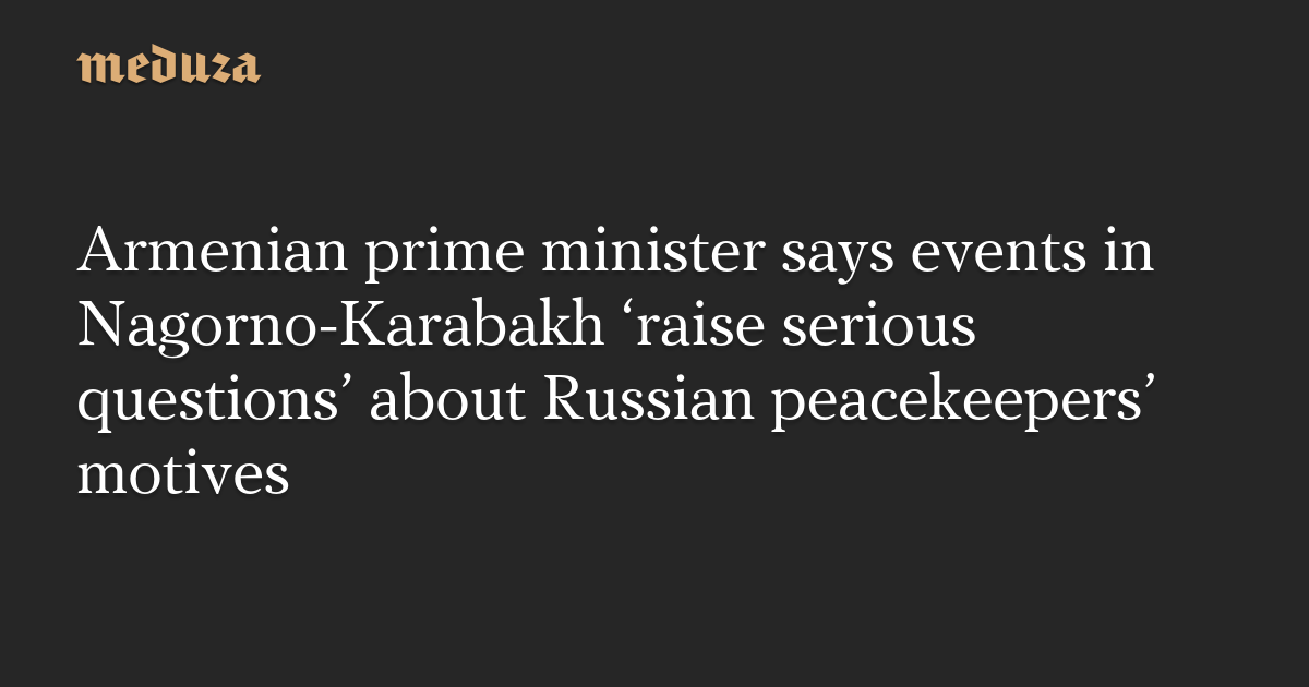 Armenian prime minister says events in Nagorno-Karabakh ‘raise serious questions’ about Russian peacekeepers’ motives