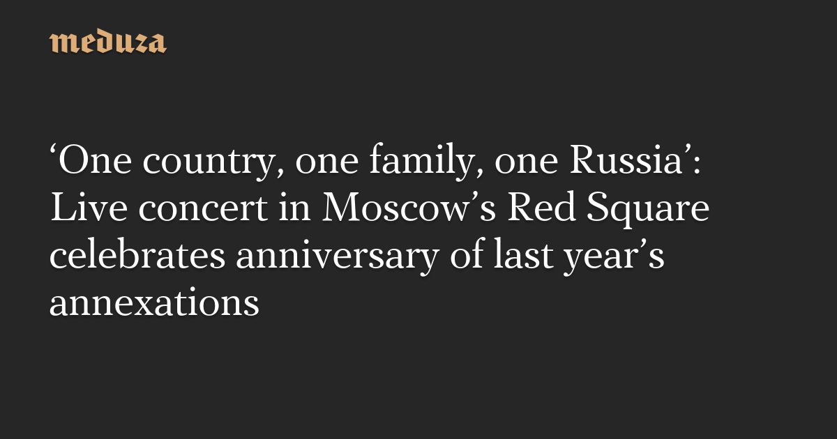 A live concert has started in Moscow’s Red Square, in celebration of Russia’s annexation of four Ukrainian territories last year. Its slogan, “One country, one family, one Russia,” is consistent with Moscow’s official rhetoric, which presents the annexation of Ukraine’s Donetsk, Luhansk, Kherson, and Zaporizhzhia regions as a “reunification” with Russia, propelled by the people’s right to self-determination.