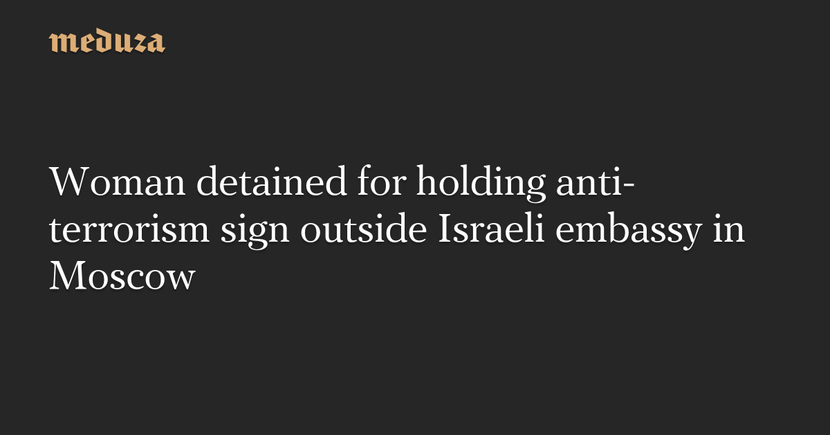 A picketer was detained for holding an anti-terrorism sign outside of the Israeli embassy in Moscow, reports OVD-Info. Irina Zavyanova, the picketer, provided human rights activists with a photograph of the sign, which shows the word “terrorism” crossed out.