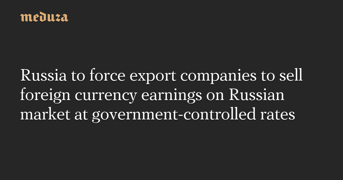 Russia to force export companies to sell foreign currency earnings on Russian market at government-controlled rates