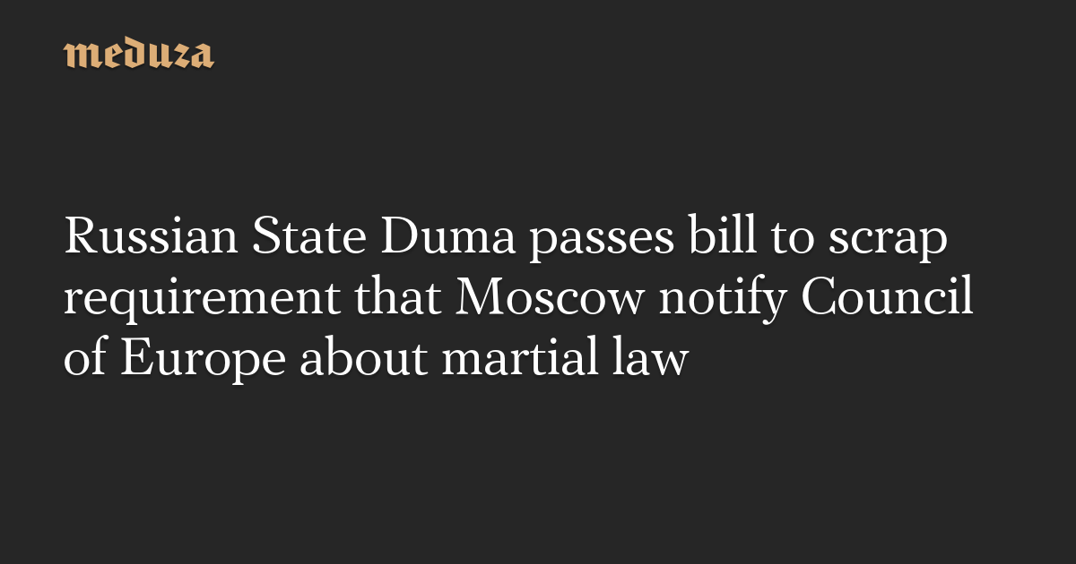 Russian State Duma passes bill to scrap requirement that Moscow notify Council of Europe about martial law