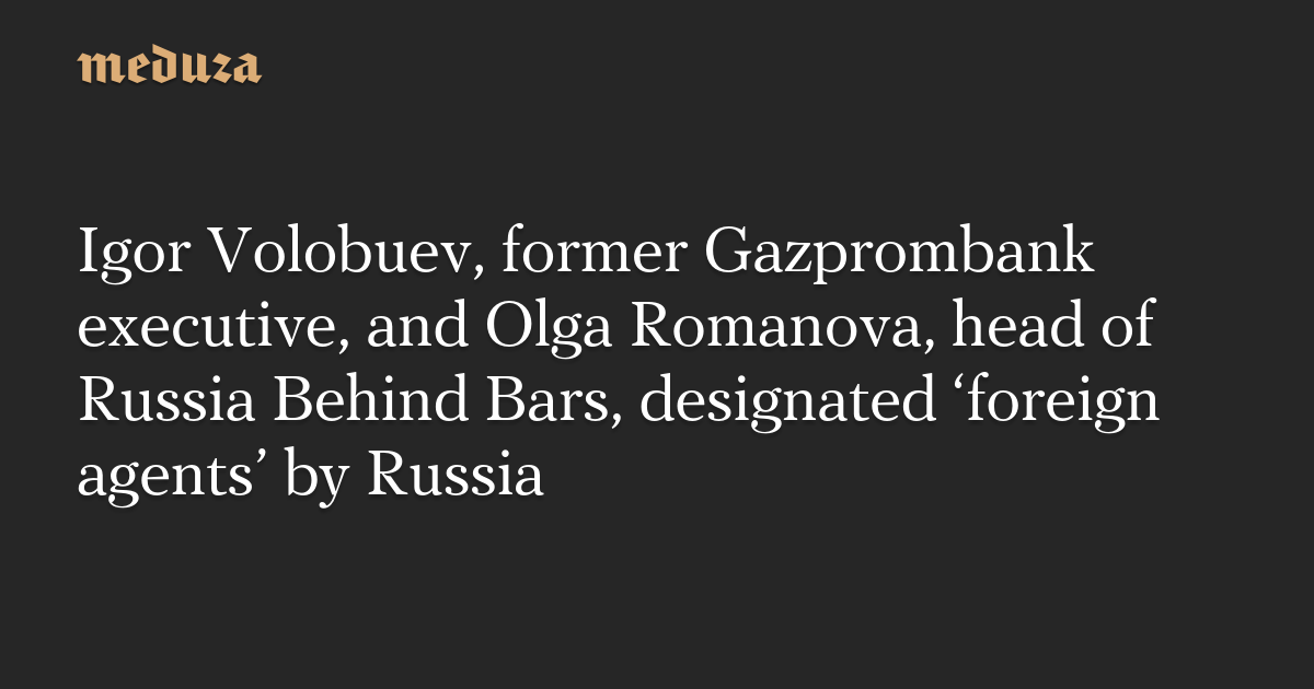 Igor Volobuev, former Gazprombank executive, and Olga Romanova, head of Russia Behind Bars, designated ‘foreign agents’ by Russia