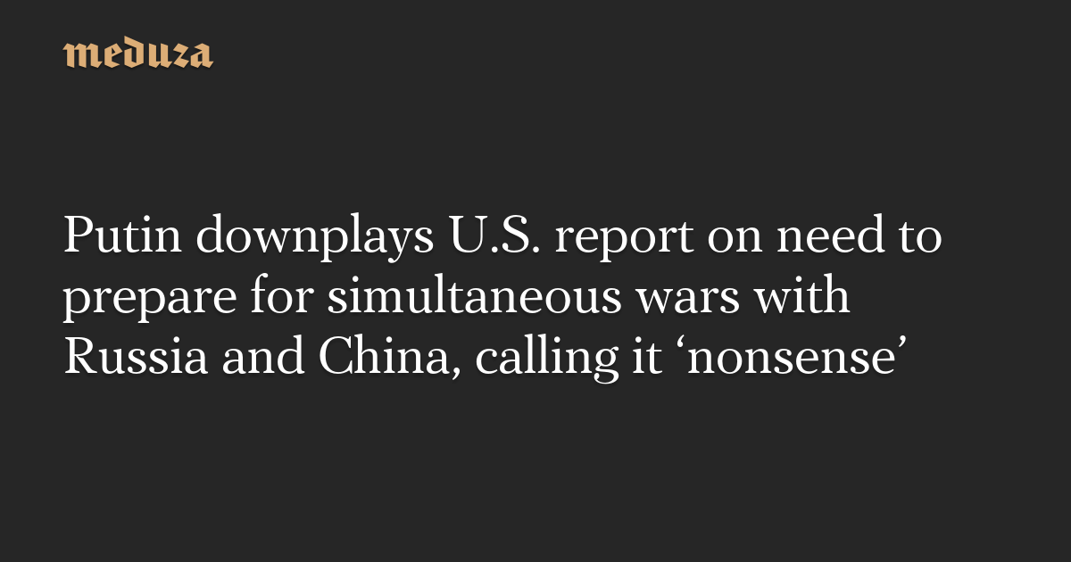 Putin downplays U.S. report on need to prepare for simultaneous wars with Russia and China, calling it ‘nonsense’