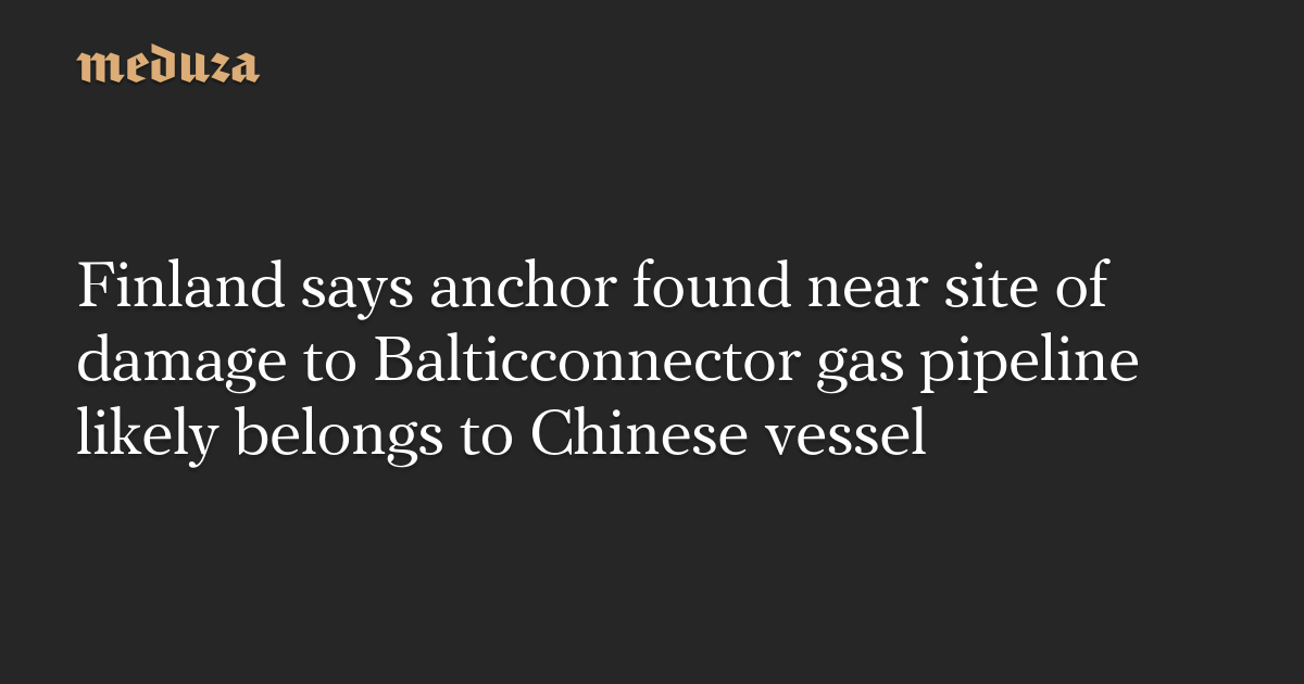 Finland says anchor found near site of damage to Balticconnector gas pipeline likely belongs to Chinese vessel