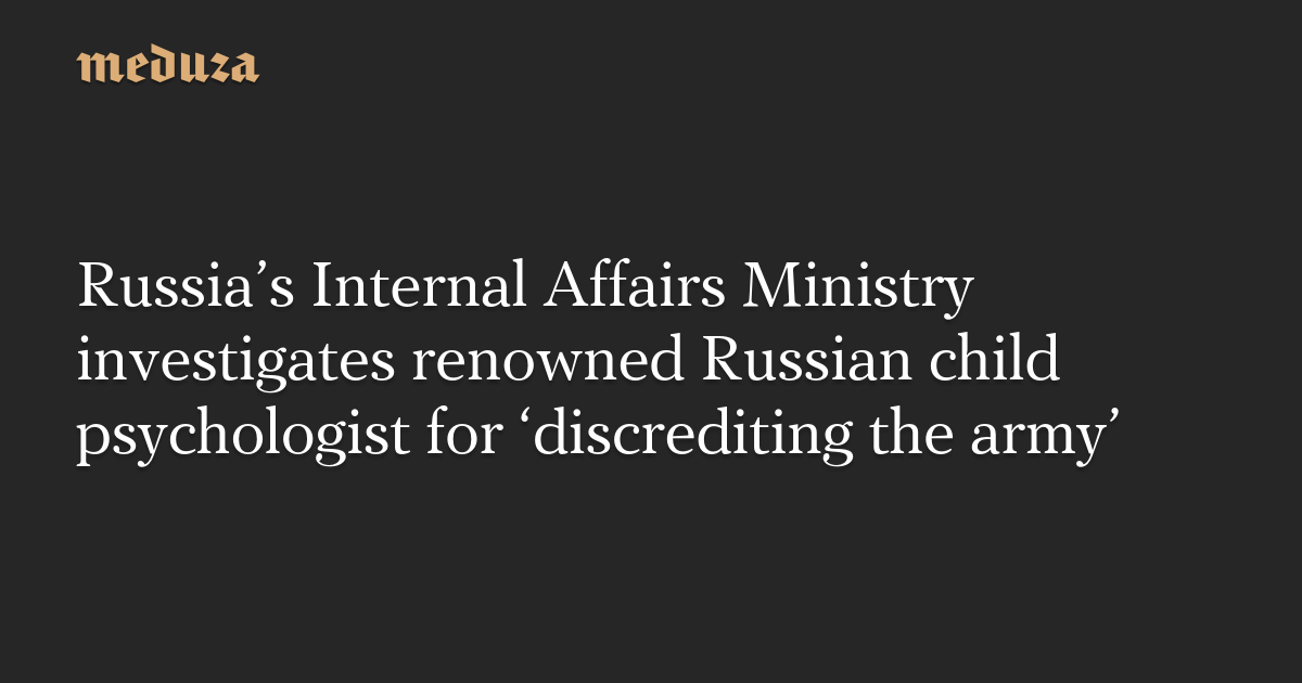 Russia’s Internal Affairs Ministry investigates renowned Russian child psychologist for ‘discrediting the army’