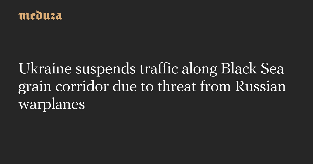 Ukraine suspends traffic along Black Sea grain corridor due to threat from Russian warplanes