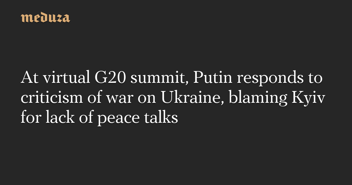 At virtual G20 summit, Putin responds to criticism of war on Ukraine, blaming Kyiv for lack of peace talks