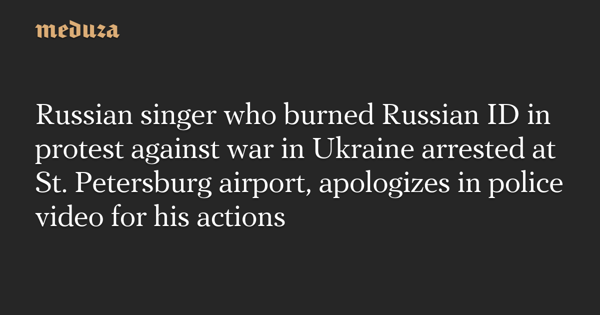Russian singer who burned Russian ID in protest against war in Ukraine arrested at St. Petersburg airport, apologizes in police video for his actions