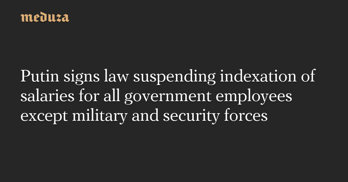 Putin signs law suspending indexation of salaries for all government employees except military and security forces