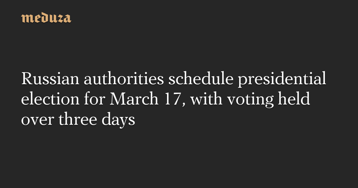 Russian authorities schedule presidential election for March 17, with voting held over three days