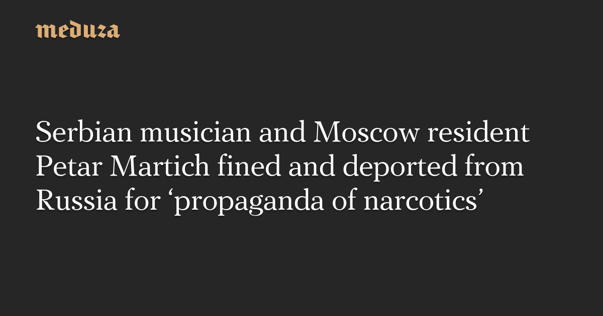 Serbian musician and Moscow resident Petar Martich fined and deported from Russia for ‘propaganda of narcotics’