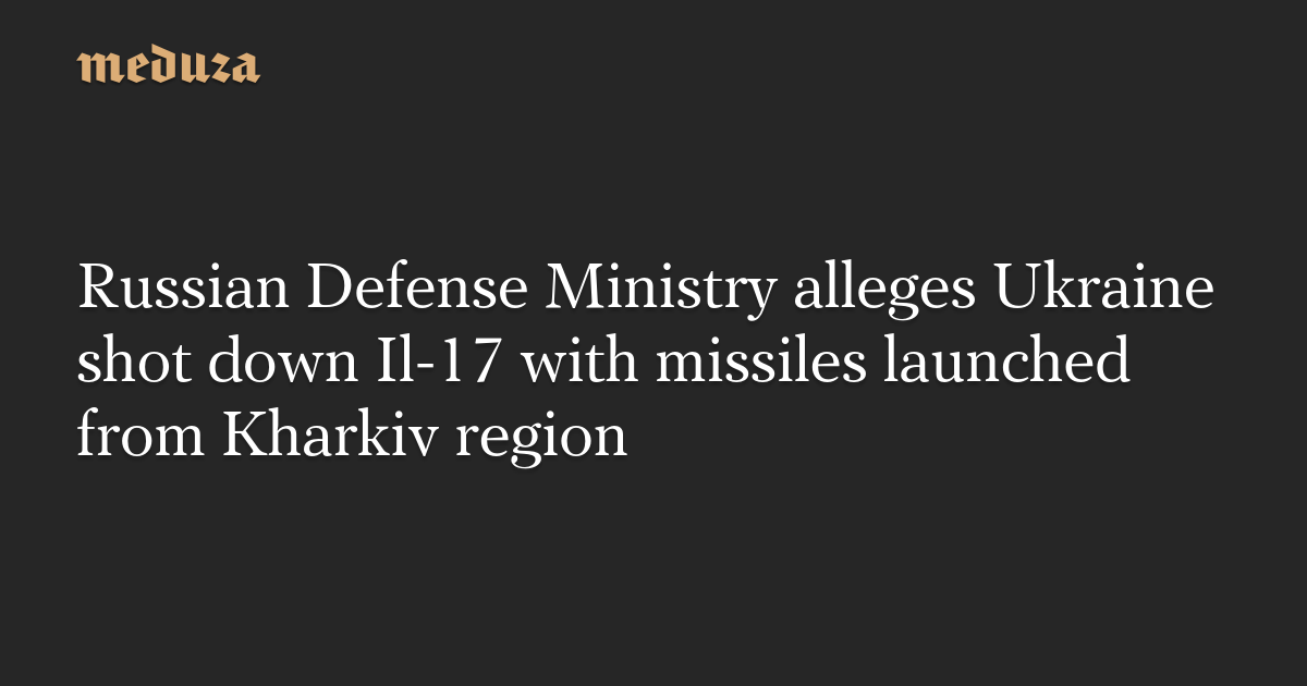 Russian Defense Ministry alleges Ukraine shot down Il-17 with missiles launched from Kharkiv region