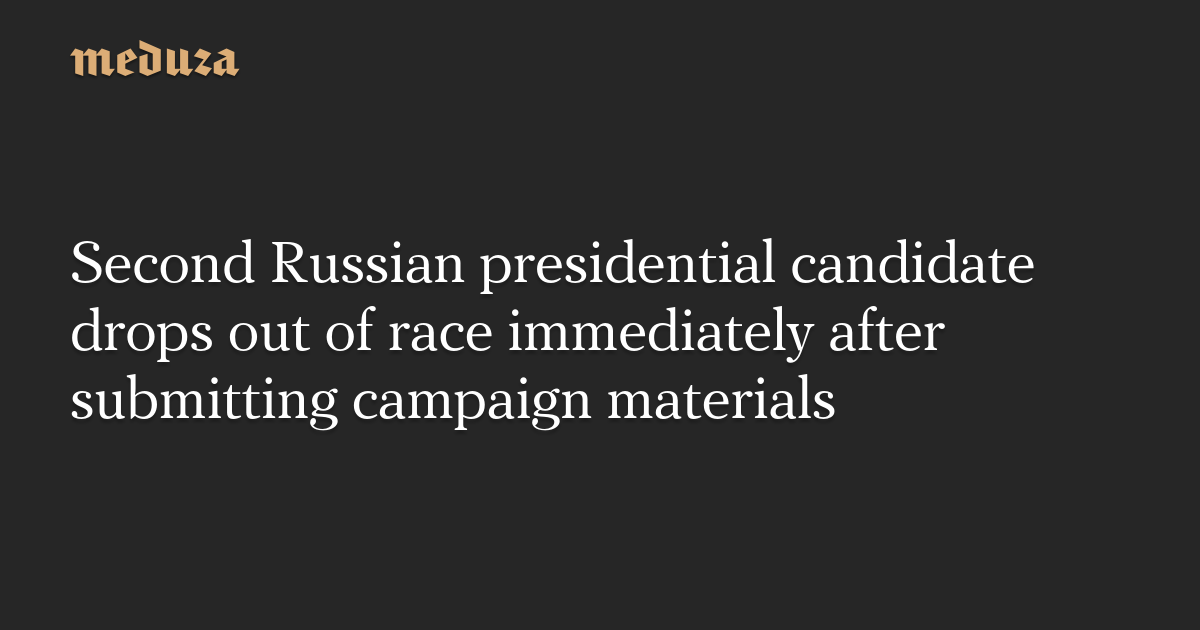 Second Russian presidential candidate drops out of race immediately after submitting campaign materials