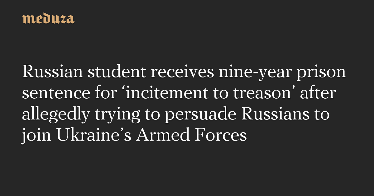 Russian student receives nine-year prison sentence for ‘incitement to treason’ after allegedly trying to persuade Russians to join Ukraine’s Armed Forces