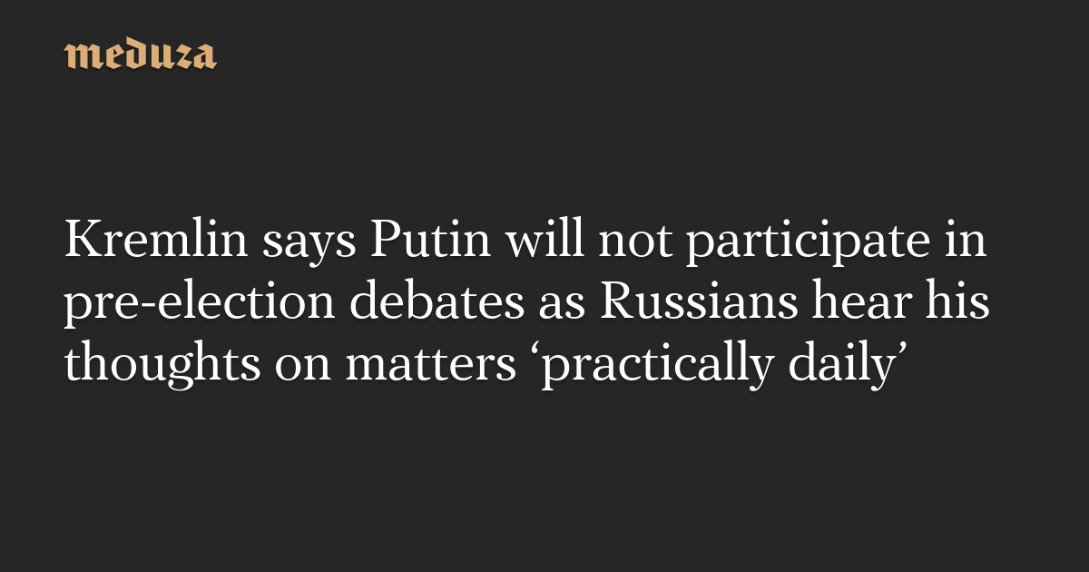 Kremlin says Putin will not participate in pre-election debates as Russians hear his thoughts on matters ‘practically daily’
