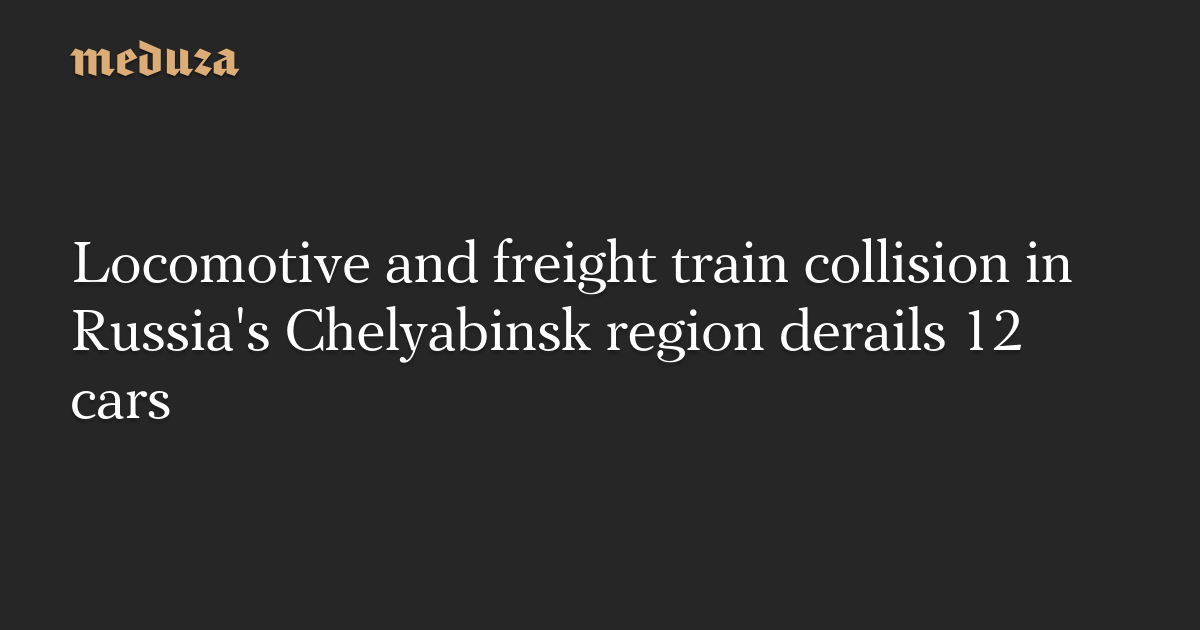 Twelve cars derailed when a locomotive collided with a freight train at a station in Russia’s Chelyabinsk region on Monday, reports the South Ural Railway’s press service.